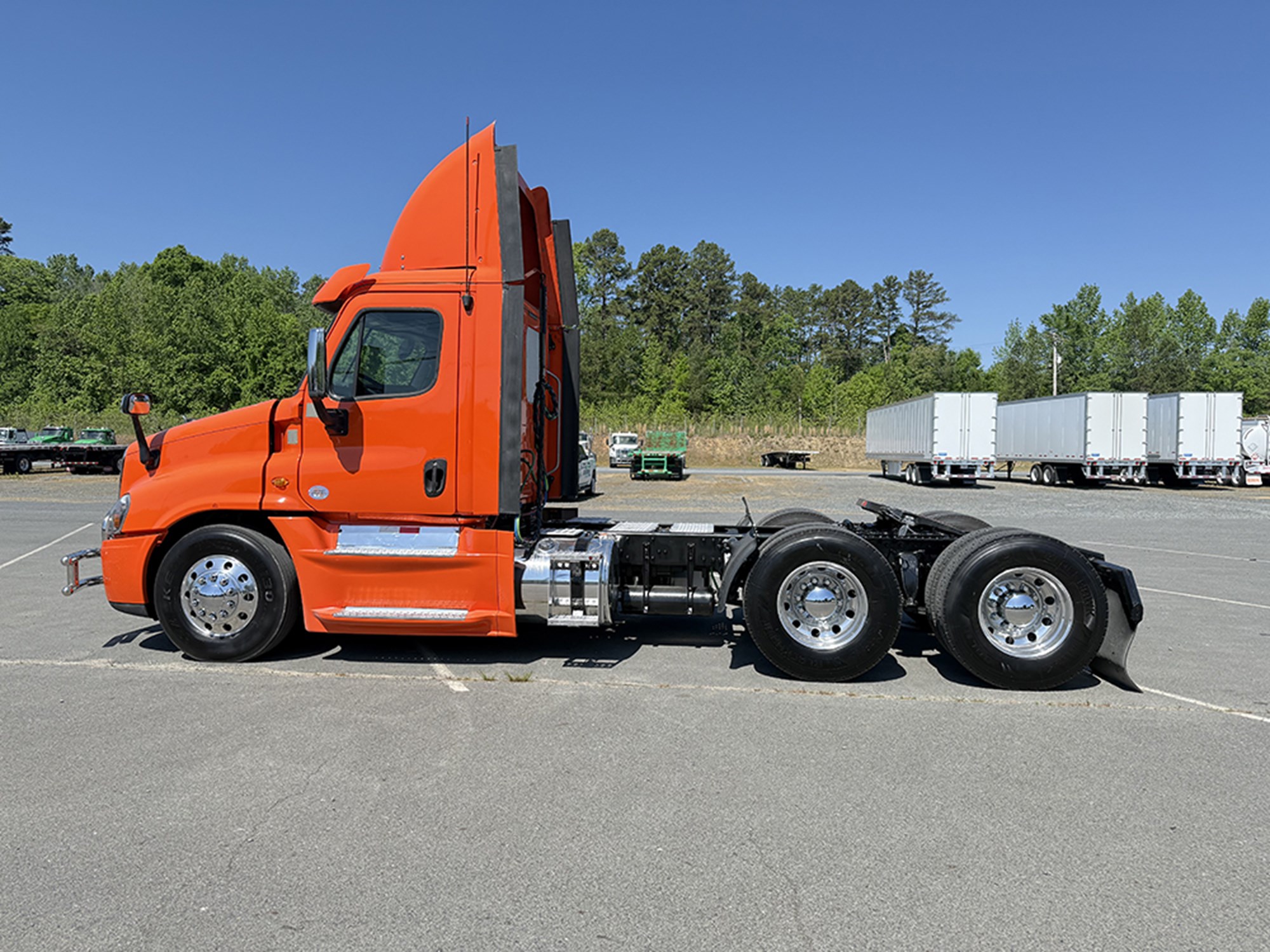 2018 Freightliner Cascadia 125 Tandem Axle Day Cab Detroit DD15 505 HP RTLO-18913A 13-Speed Transmission 12350# Front 40000# Rear 52350# GVWR P/S A/C Power Windows and Mirrors Tilt Steering Full Top Fairing Step Fairing Painted Visor Fold Down Grill/Bumper Guard Dual Aluminum Tanks. Ask About Our Warranty and Finance Options!