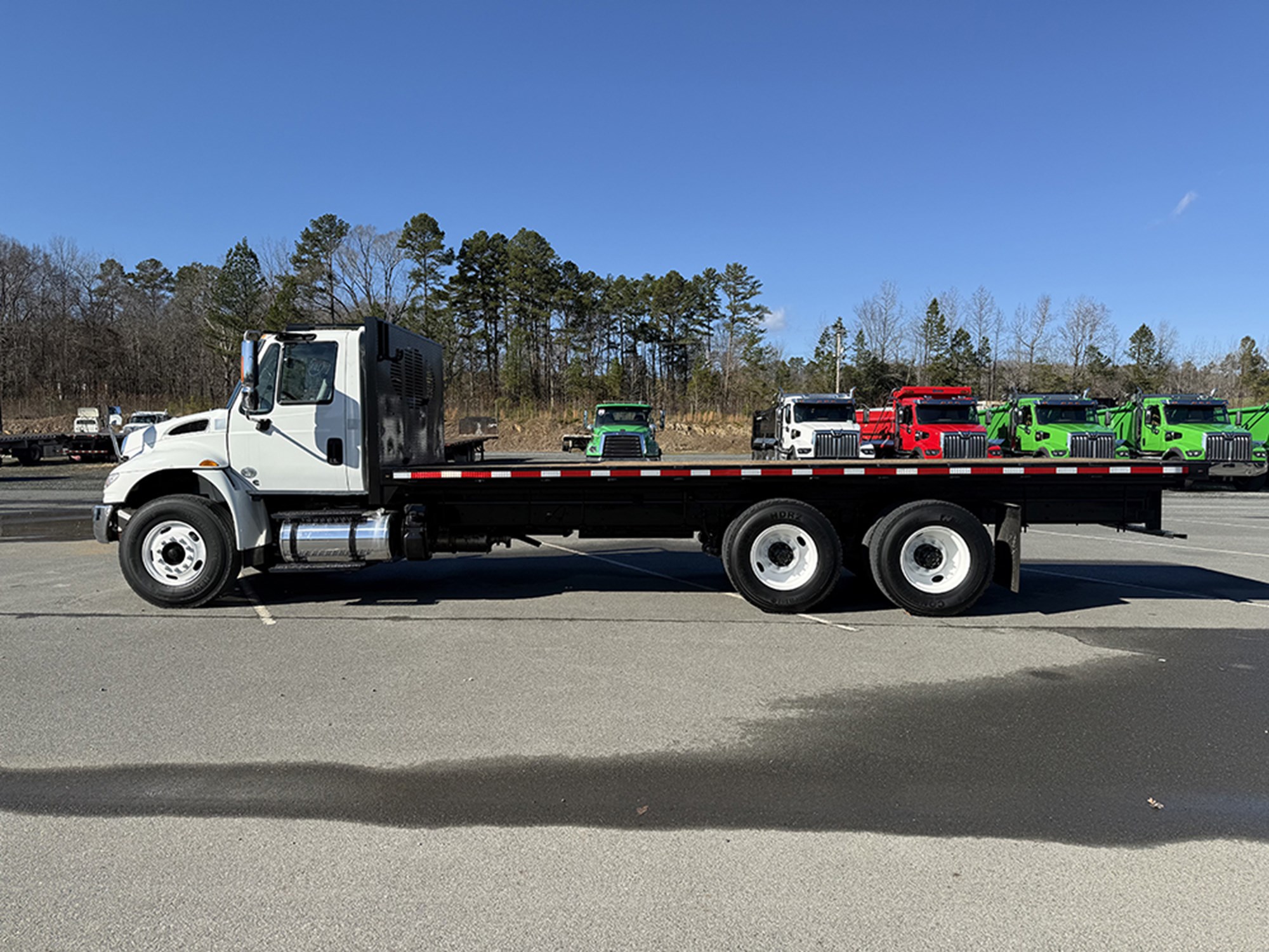 2019 International 4400SBA 24′ x 96″ Supreme Flatbed Cummins L9 350 HP Allison 3000HS Automatic Transmission 14000# Front 40000# Rear 54000# GVWR P/S A/C Power Windows Mirrors and Locks Dual Hood Mirrors Cruise Wood Floor Steel Headache Rack 70 Gallon Aluminum Tank.