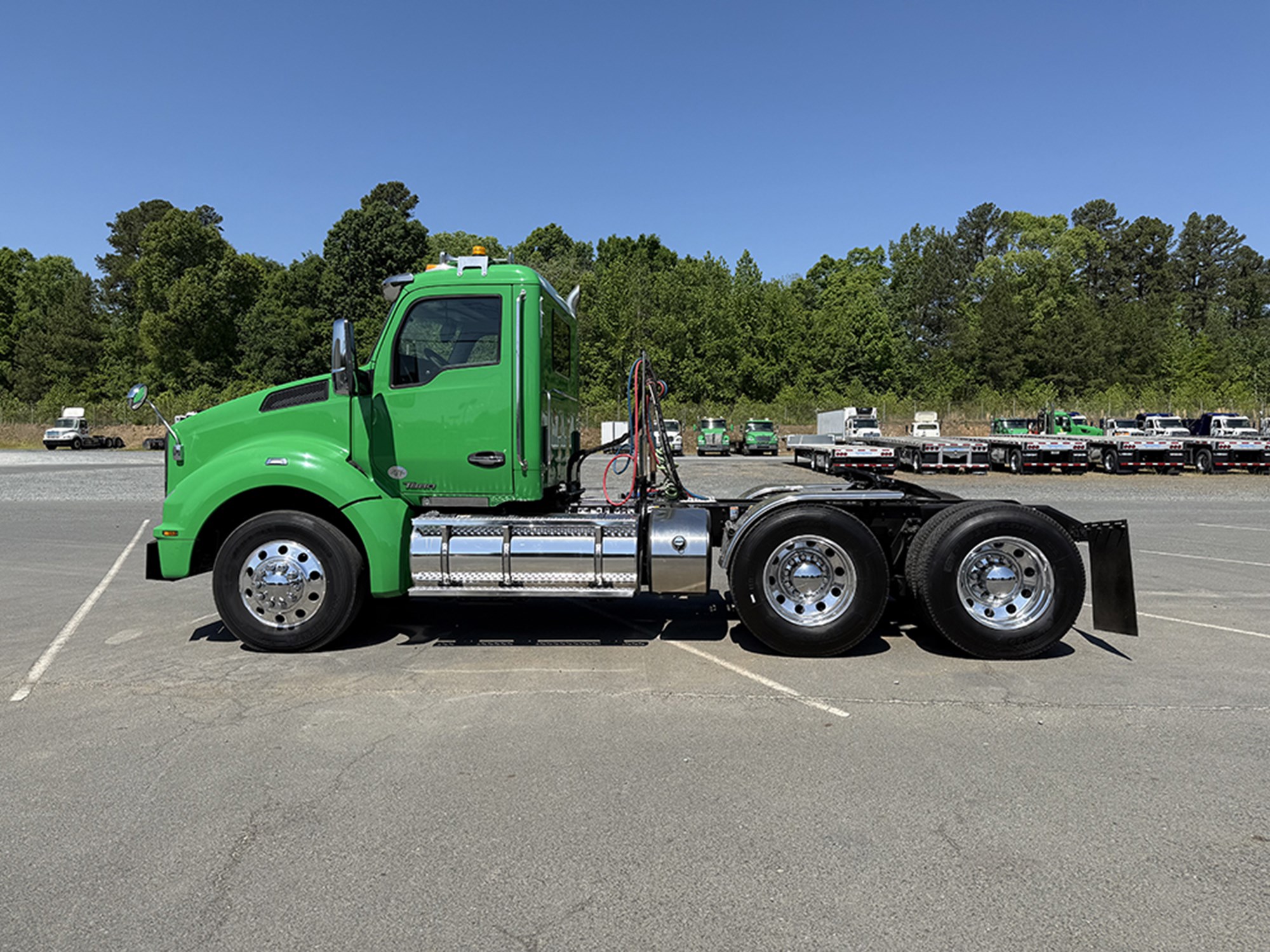 2019 Kenworth T880 Tandem Axle Day Cab Cummins X15 450 HP FO16E313A-MHP Automatic Transmission 12500# Front 40000# Rear 52500# GVWR P/S A/C Power Windows and Mirrors Tilt Steering 2-Way Wet Line SS Visor Locking Rears SS Half Fenders 135 Gallon Aluminum Tank. Ask About Our Warranty and Finance Options!