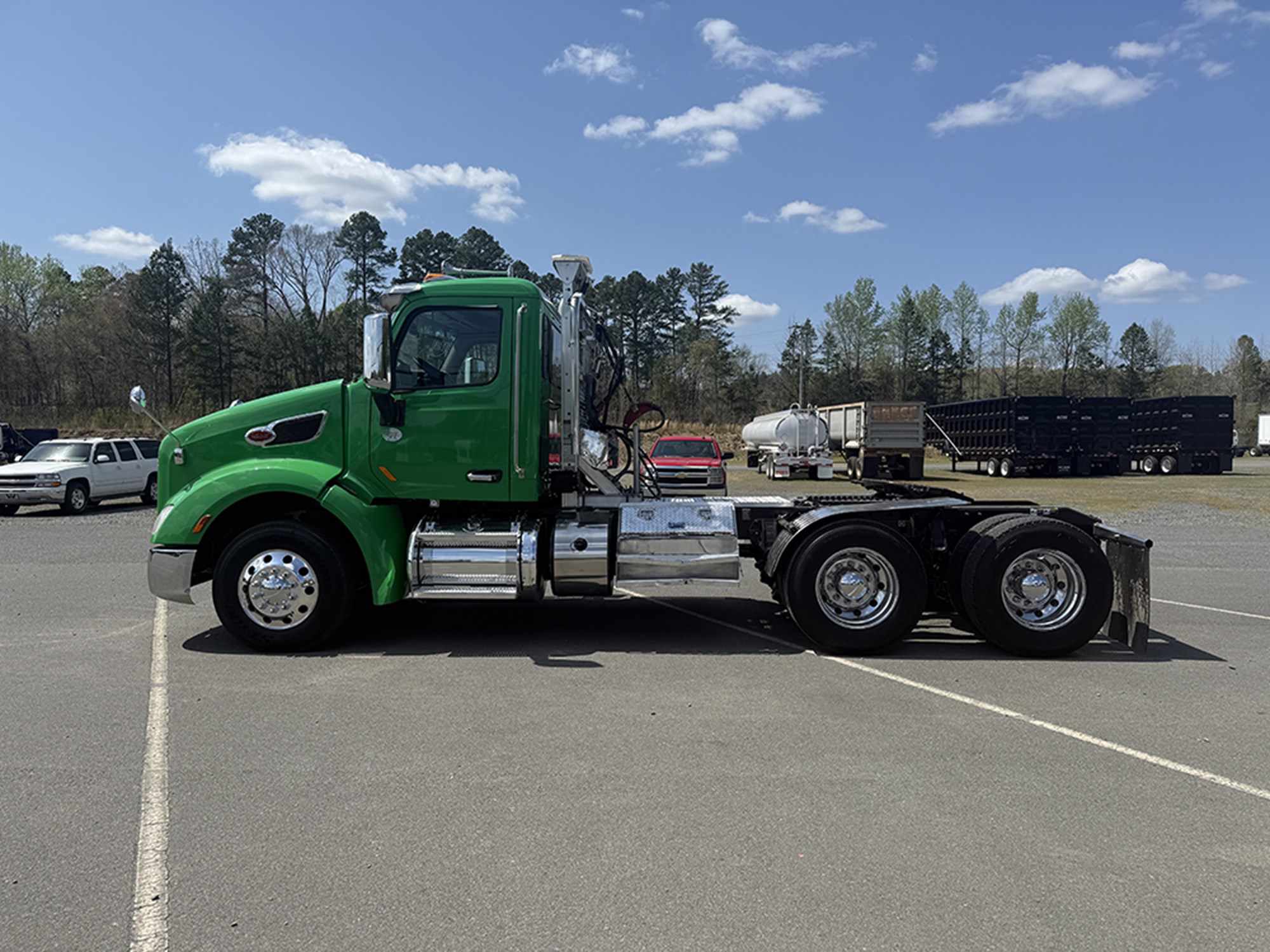 2019 Peterbilt 579 Tandem Axle Day Cab Cummins X15 450 HP FOE313AMHP Automatic Transmission 12000# Front 38000# Rear 50000# GVWR P/S A/C Power Windows Mirrors and Locks Tolt Steering Air Ride Cab Aluminum Headache Rack 2 Way Wet Line SS Visor SS Half Fenders (1) Aluminum Step/Storage Box Dual Aluminum Tanks. Ask About Our Warranty and Finance Options!