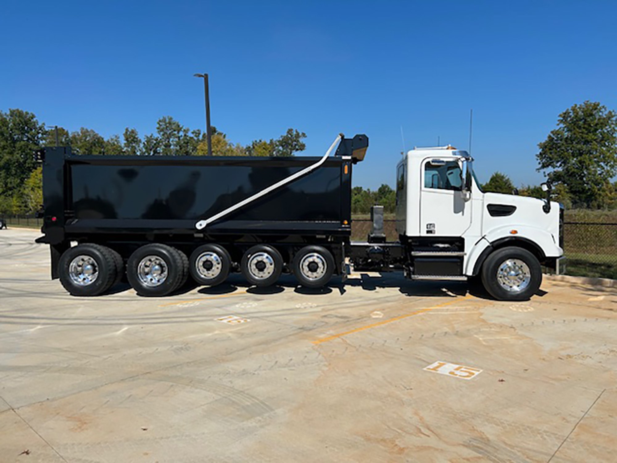 2023 Freightliner 122SD 20′ Quint Axle Heritage Steel Dump Detroit DD13 470 HP Allison 4500RDS Automatic Transmission 18000# Front 46000# Rear (3) Steerable Lift Axles 86200# GVWR P/S A/C Power Windows Mirrors and Locks Tilt Steering 2-Way Gate 60″ Side Height Double Frame Electric Tarp 80 Gallon Aluminum Tank.