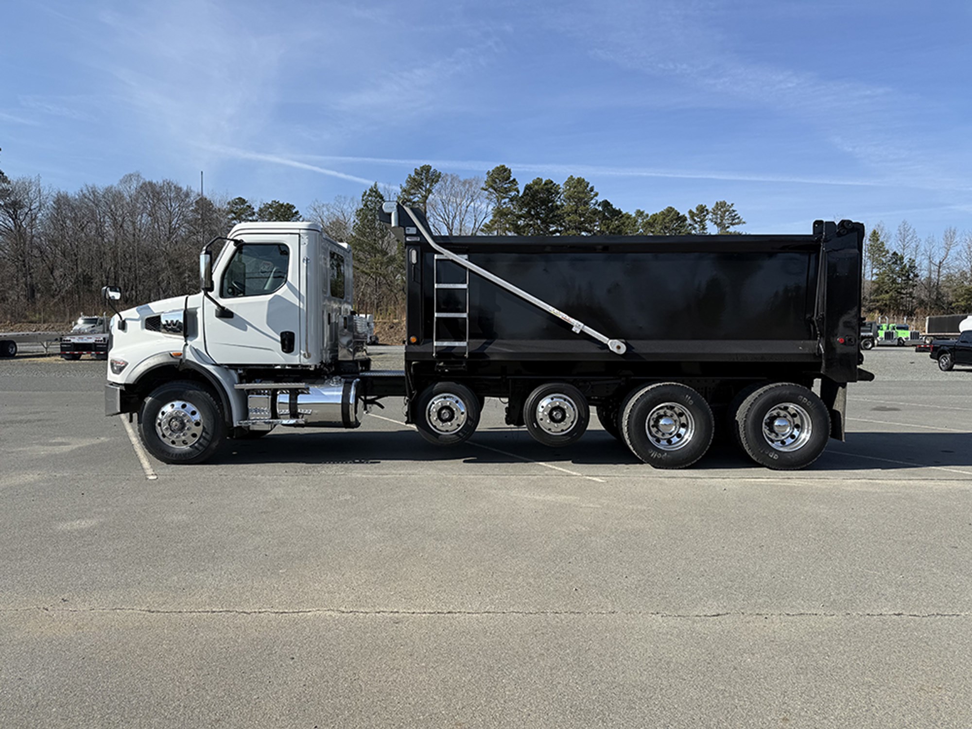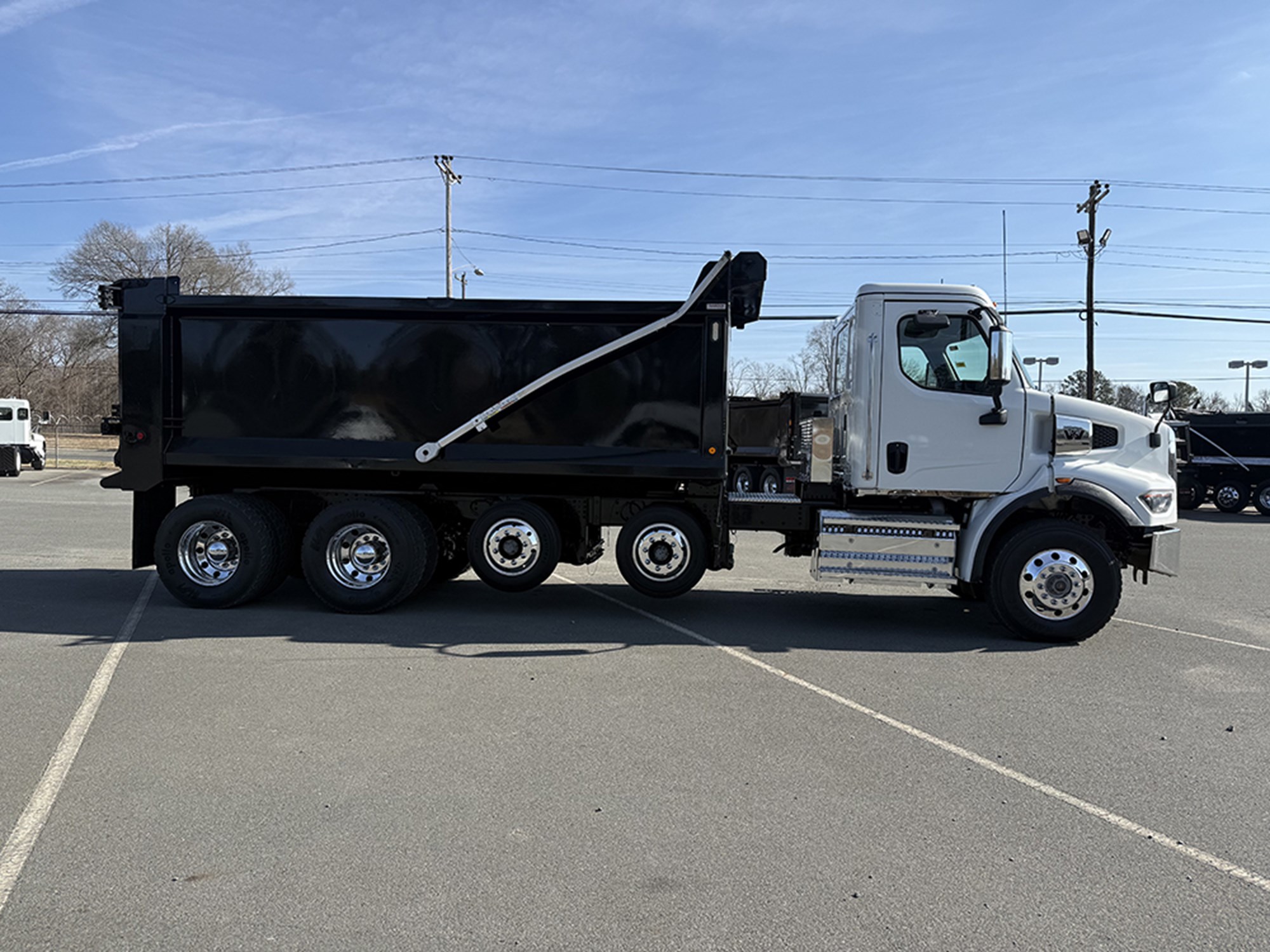 2024 Western Star 47X Quad Axle 18′ Heritage Steel Dump Cummins X12 475 HP Allison 4500RDS Automatic Transmission 18000# Front 46000# Rear (2) 9880# Lift Axles P/S A/C Power Windows Mirrors and Locks Heated Mirrors Cruise Tilt Intraxle and Diff Lock 2-Way Gate 60″ Sides Electric Tarp Asphalt Taper 80 Gallon Aluminum Tank. Ask About Our Warranty and Finance Options!