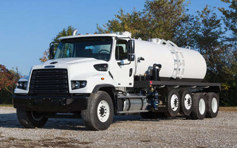 Severe duty truck with a set-forward axle designed for vocational applications like construction, refuse, mixers, and dump trucks. Built with reliability and driver safety in mind.